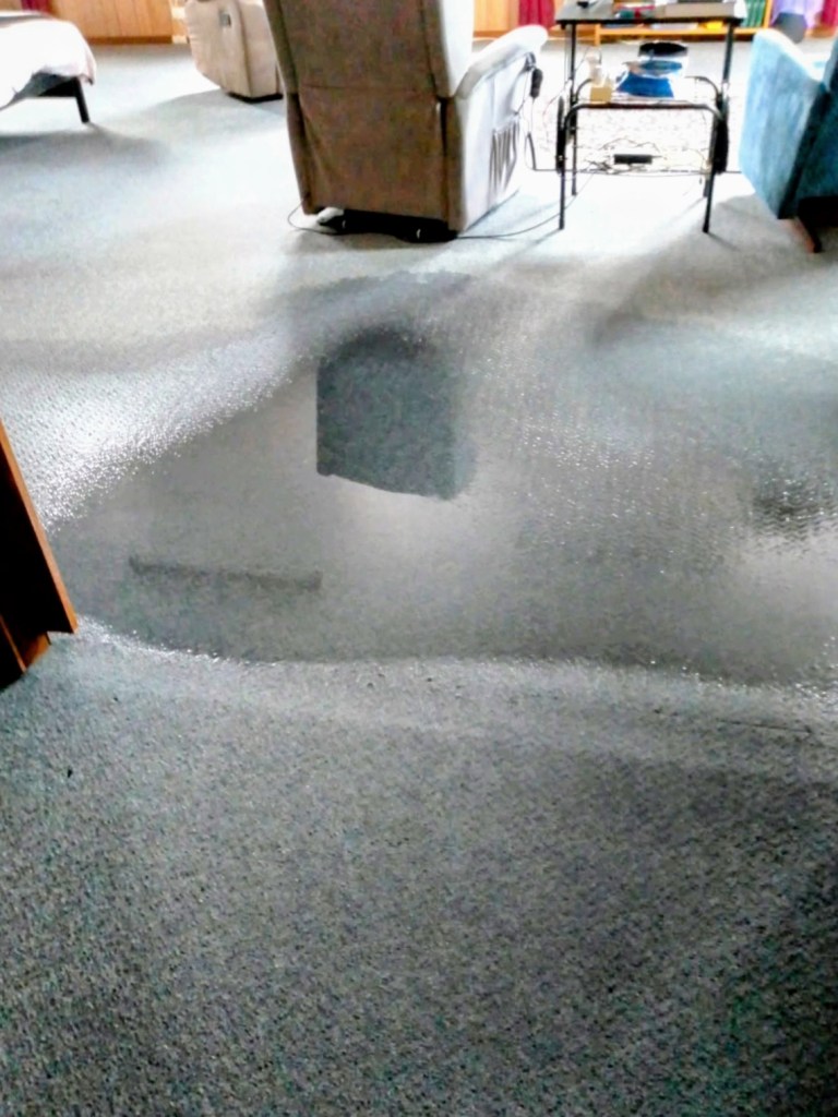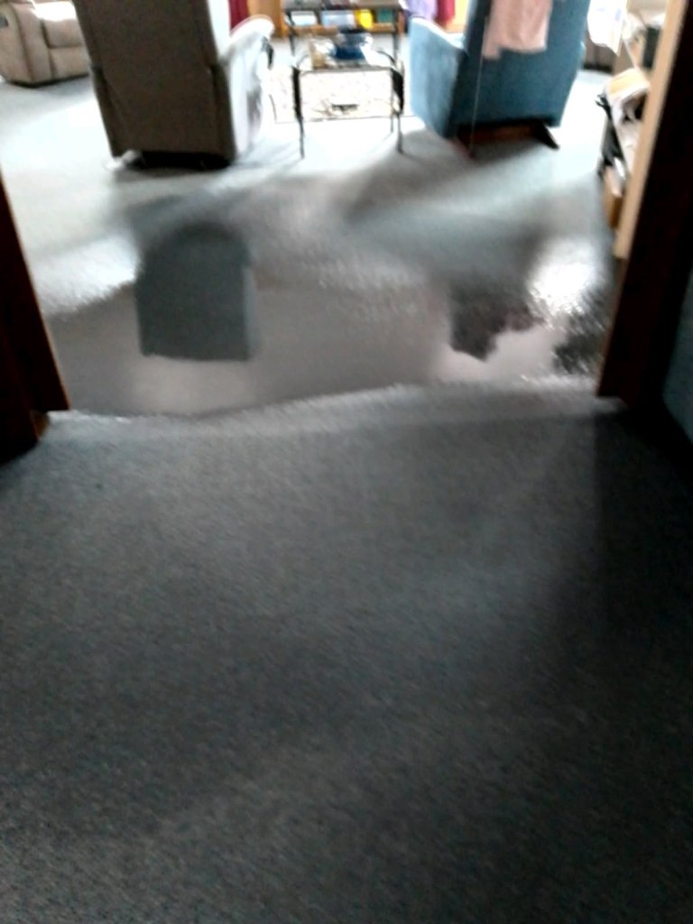 Anyways at the time of this major flooding from the houses extension roof, Malcolm Ryan decided that to call out a Carpet Cleaning Company would only make this worse, as he believes (he is cheap, doesn’t like to spend money, only raise the rent) telling me that it would only add more water to these carpets?