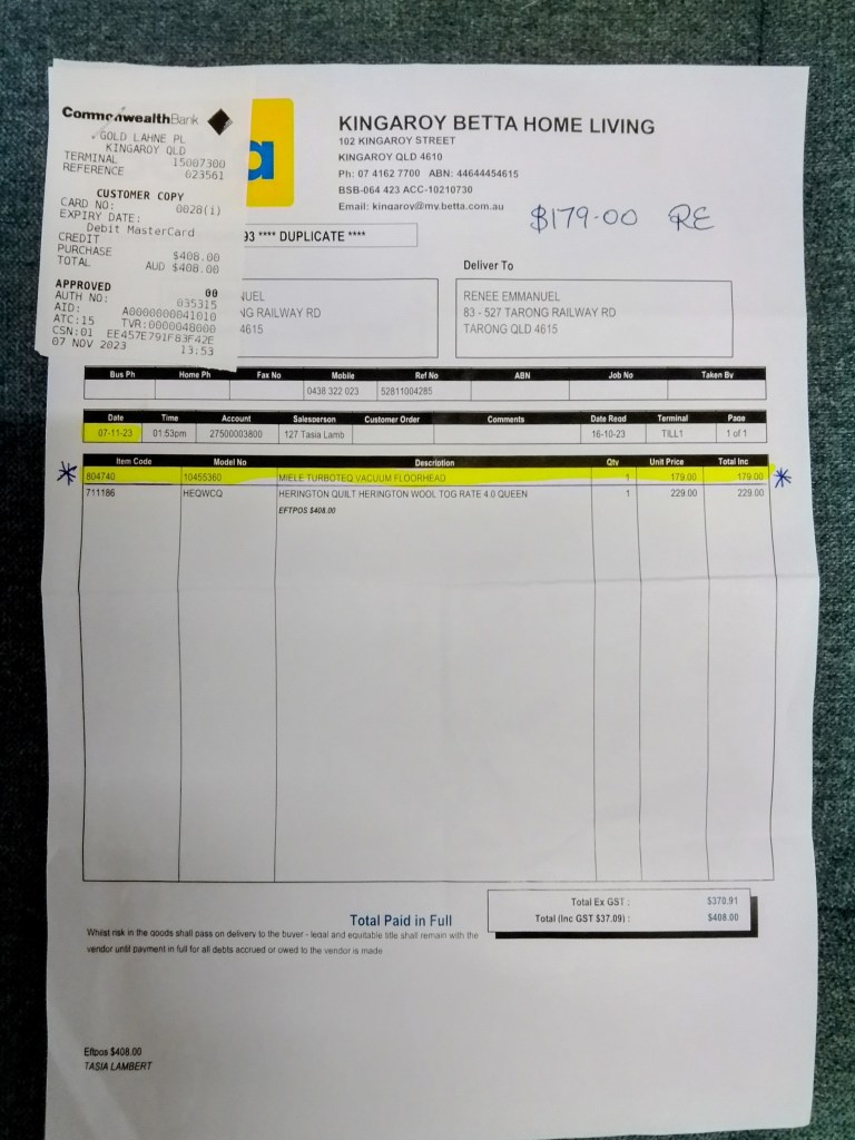 I will just leave you with the photos of my $800 plus Vacuum Cleaners Turbo Head